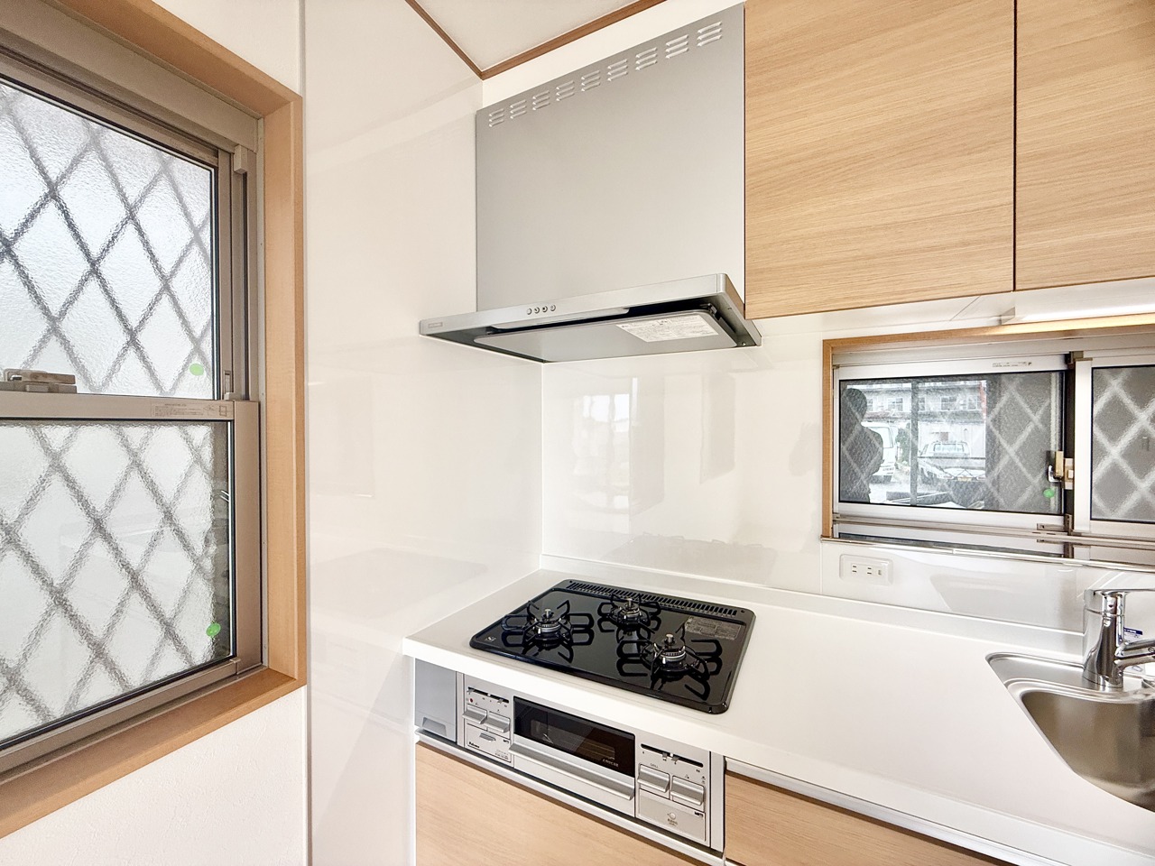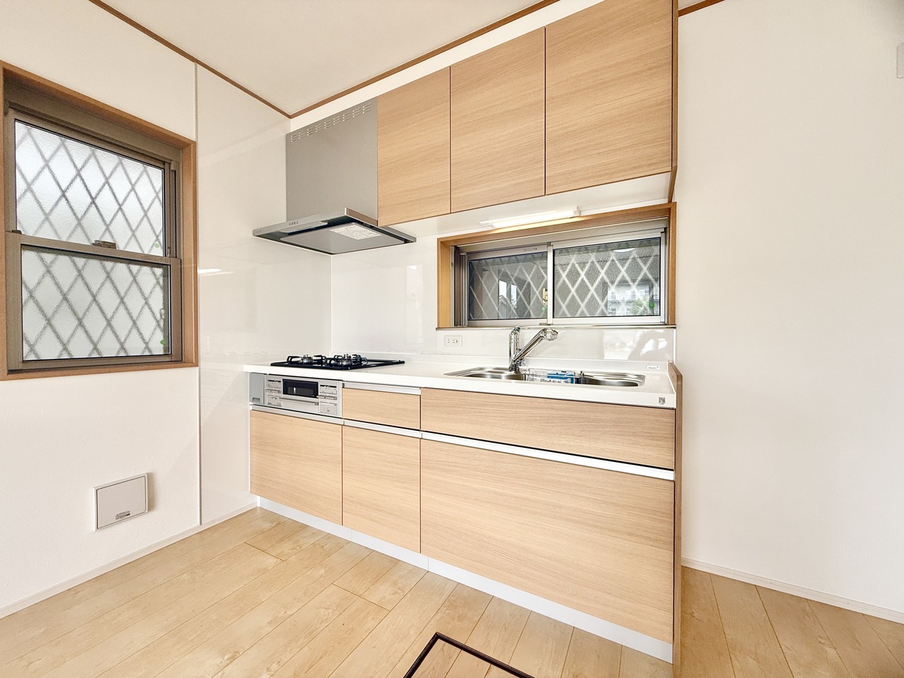 木目調の温もりを感じる新設キッチン